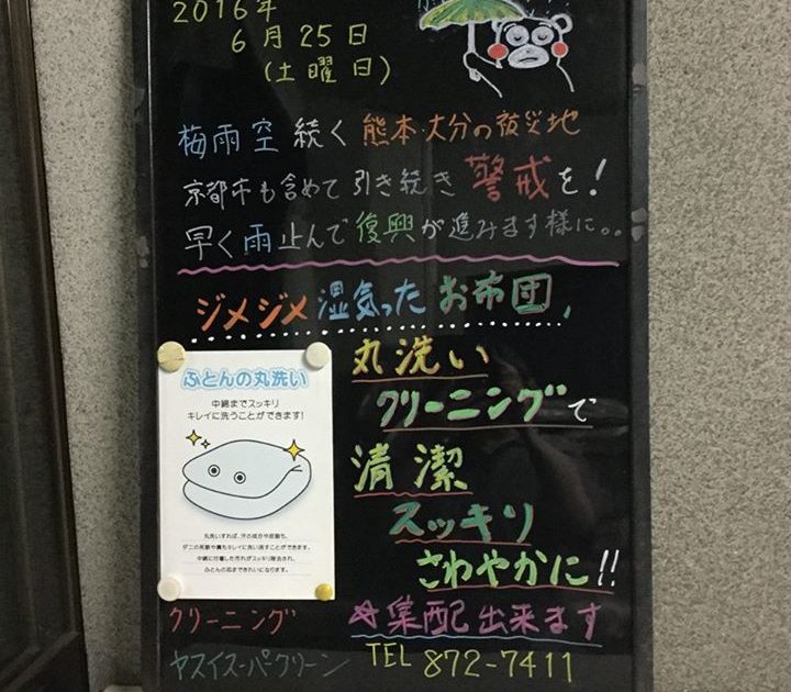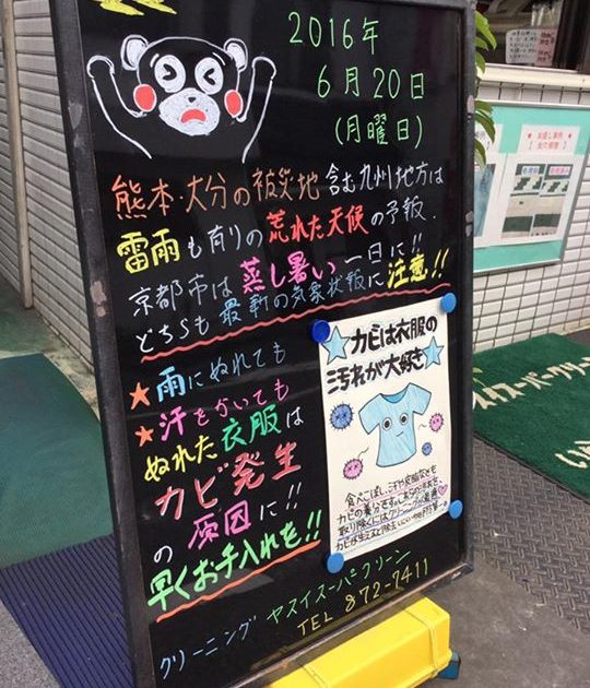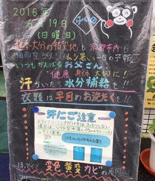 【#熊本大分の被災地も京都市内も暑い! #熱中症にはご注意を #汗吸った御衣装もご注意を】 2016/06/18 14:43 34℃ 南東の風 1.0m/s 晴れ もう少しで猛暑日の京都市内、この店頭ブラックボードも真夏 […]