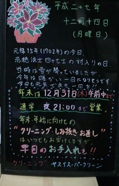 【赤穂浪士の討入り、当時は雪模様、でも今年は暖かいですね】