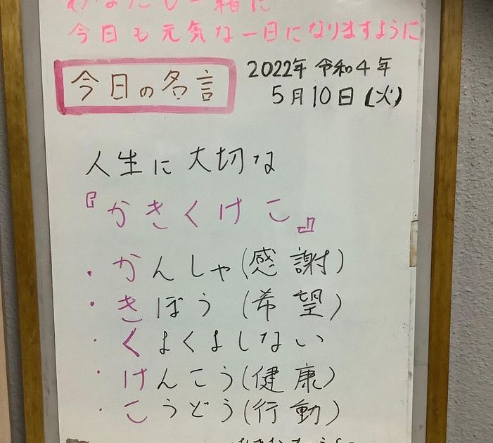 #2022年令和4年5月10日 #今日も一緒に元気に #今日の名言 #人生に大切なかきくけこ #かんしゃ感謝 #きぼう希望 #くよくよしない #けんこう健康 #こうどう行動 #あきおまつうら #京都市 #右京区 #太秦 […]