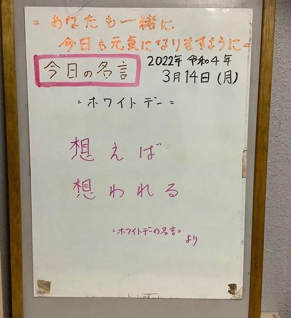 #2022年令和4年3月14日 #ホワイトデー #今日もあなたも一緒に元気に❣️ #今日の名言 #想えば想われる #ホワイトデーの名言より #京都市 #右京区 #太秦 #花園 #35年の経験知識技術 #生地と汚れに最適の […]